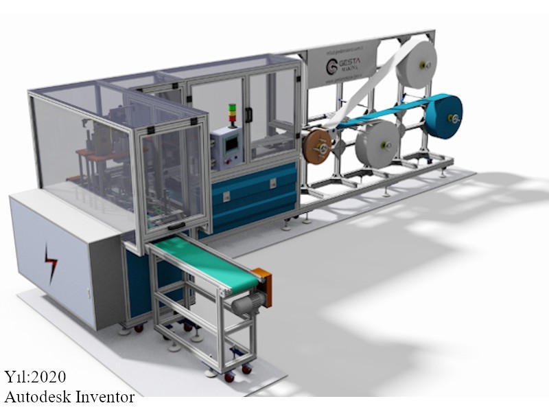 3 katmanlı cerrahi maske üretimini gerçekleştiren makinamız dakikada 50 adet üretim kapasitesine sahiptir. Full otomatik olup ultrasonik kaynak kullanılmaktadır. Almanya'ya sevkiyat ve kurulumunu gerçekletirdiğimiz bu makina ihracat projemizdir.