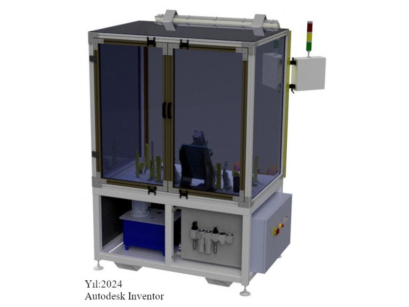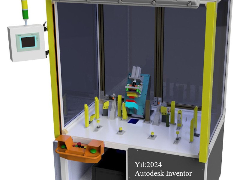 Hidrolik silindir ile plastik parçanın istenilen formda kesilmesine olanak sağlayan makinadır. Kesilecek olan forma göre kesme kalıbı tasarımı yapılmıştır.